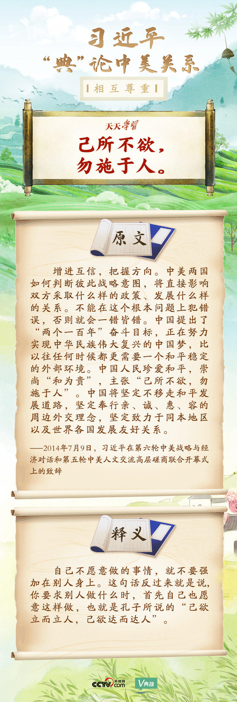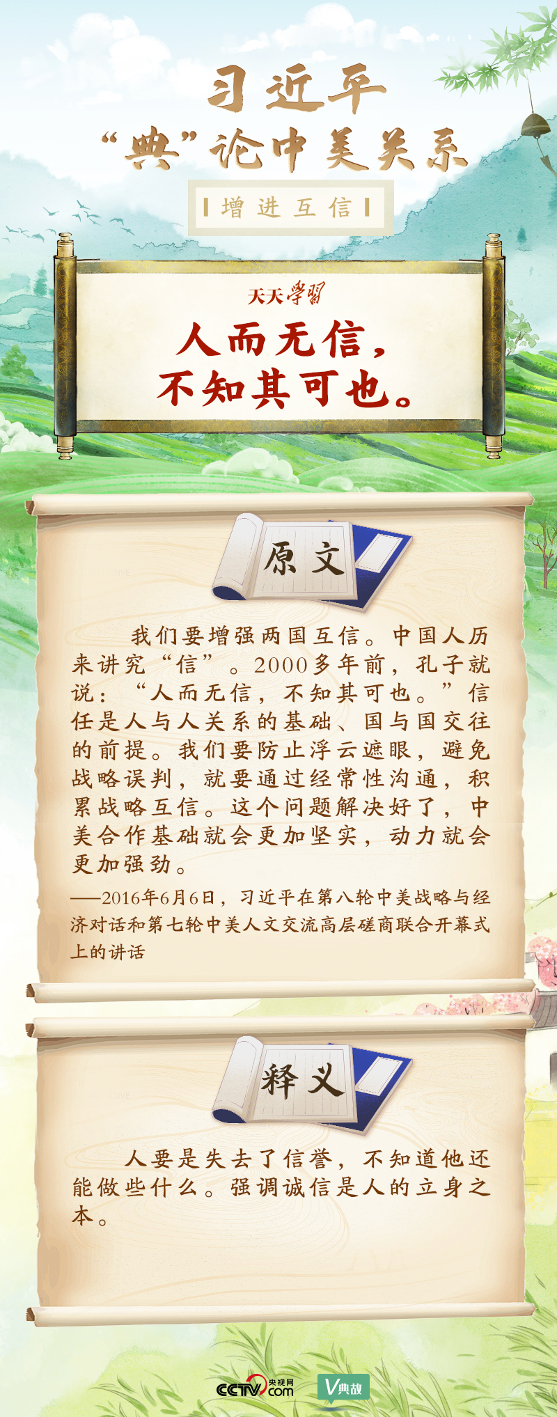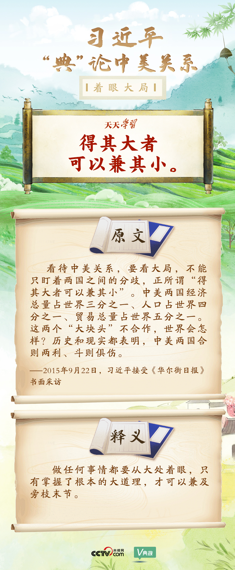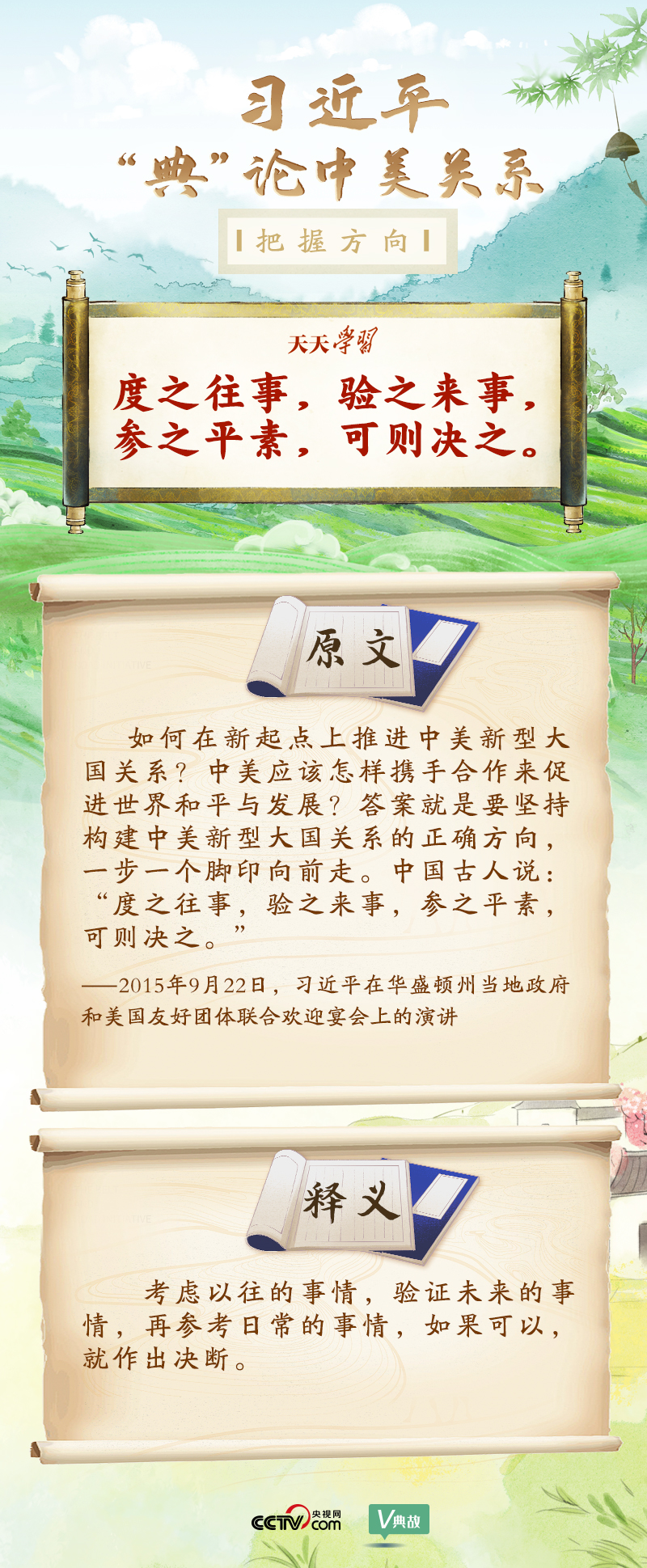 党的十八大以来,习近平主席就中美关系发表了一系列重要讲话。他站在时代高度分析、研判中美关系现状及发展趋势,并引经据典为发展中美关系指出正确方向。这些论述蕴含深刻的战略思维和政治智慧,具有重大现实意义和深远历史意义。央视网《天天学习》与您一起深刻领会。