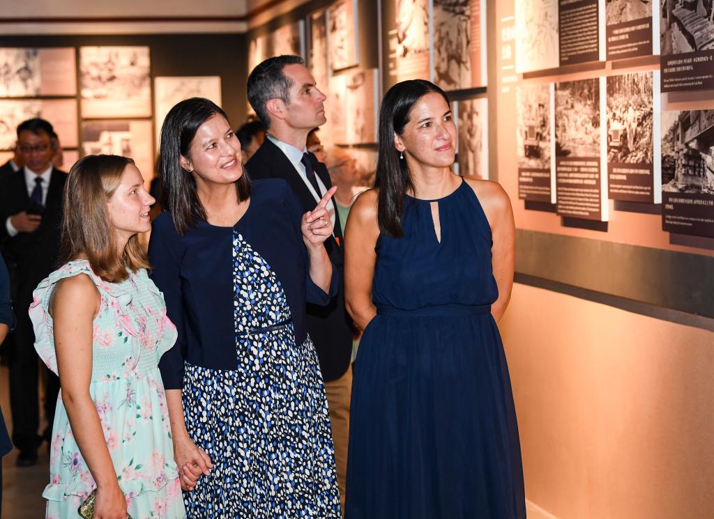 8月8日,在中国重庆史迪威博物馆举行的约瑟夫·史迪威将军诞辰140周年纪念活动上,嘉宾参观史迪威将军生平图片展。