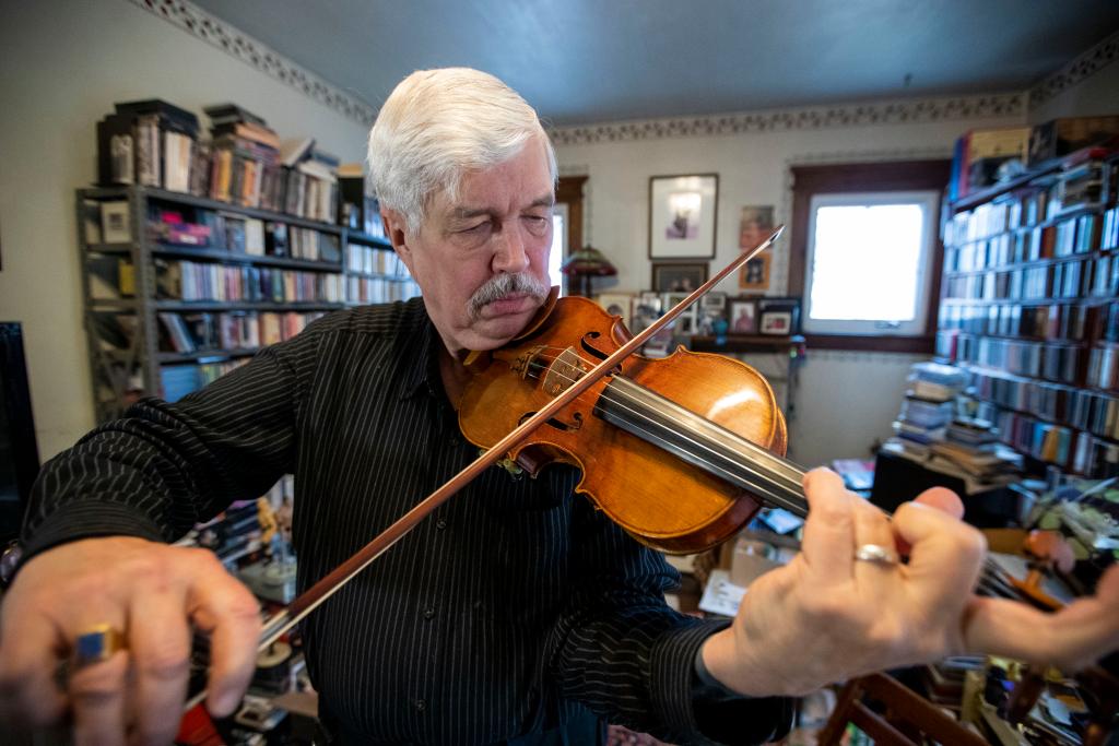 2019年1月29日,布思在位于美国新泽西的家中练琴。