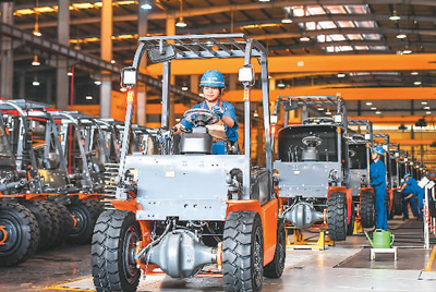 江西省高安市引导企业加快高科技研发和新技术转化,培育发展战略性新兴产业,助力经济高质量发展。截至目前,该市共有高新技术企业101家,科技型中小企业221家,涵盖装备制造、电子信息、新能源、新材料等领域。图为日前,高安市龙工机械有限公司员工在装配车间赶制叉车。周 亮摄(人民视觉)