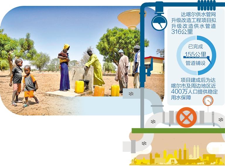 达喀尔供水工程项目经理任传科告诉记者,该项目覆盖面积达到7000余公顷,建成后配合旨在提升供水量的海水淡化项目,将使达喀尔市日均供水流量翻番,为达喀尔市及周边地区近400万人口提供稳定的用水保障。