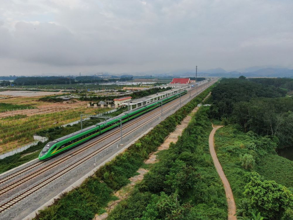 2023年10月22日,动车从位于云南省景洪市勐罕镇的中老铁路橄榄坝站驶出。
