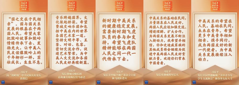 “中美关系的基础在民间,力量源泉在人民友好。”习近平主席多次强调加强民间友好和人文交流对发展两国关系的重要意义,并与美国各界人士多次真挚互动,推动中美民间友好续写新的篇章,为两国人民加强交流、增进理解、扩大合作注入强劲动力。一起来看习近平推动中美民间外交的故事。