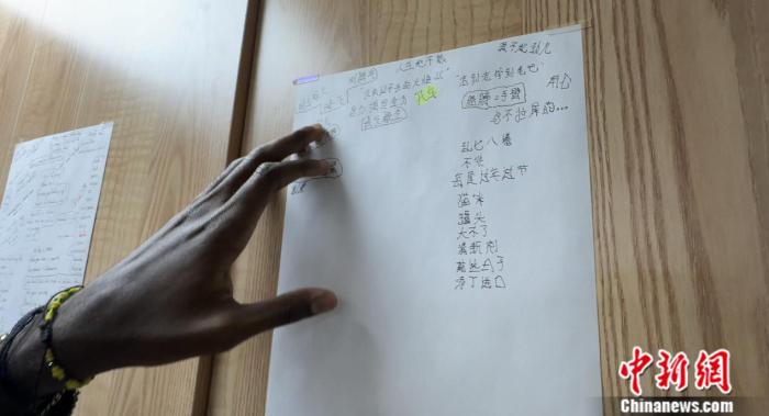 所以,和周围的同学一样,来到中国之后,任瑞依旧没有停下学习的脚步。“不太理解或者自己觉得比较难背下来的词汇,我都记下来贴在柜子上。”任瑞展示了他宿舍里的“随手贴”,上面记满了“没有过不去的火焰山”等等有趣的中文俗语和词汇。