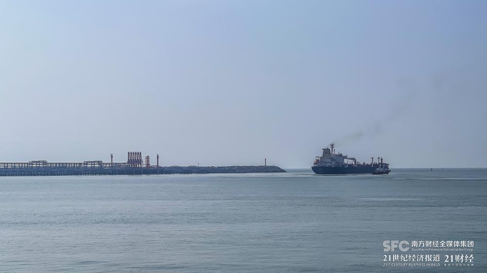 货轮从广东石化项目产品码头驶出,郑玮/摄
