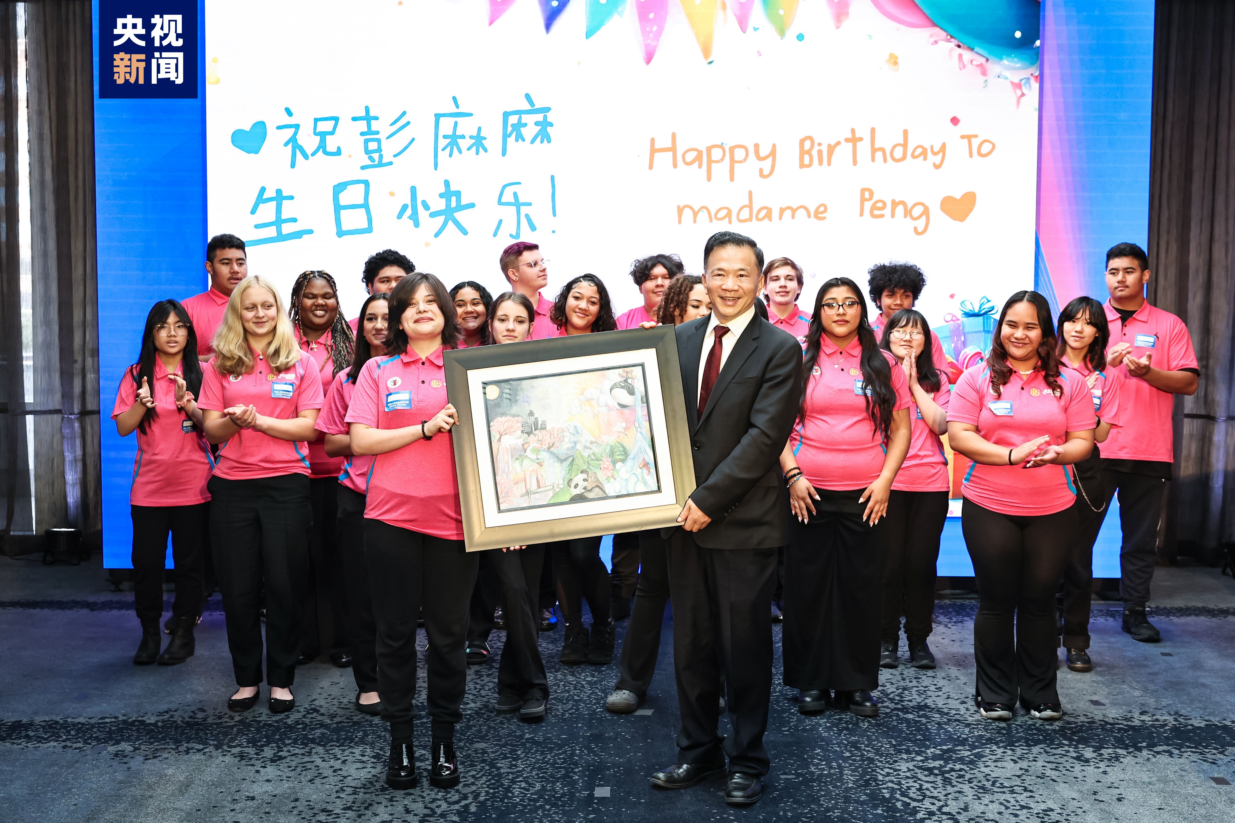 11月16日,中国中央广播电视总台与美中青少年学生交流协会等团体在美国旧金山联合举办“中美人文交流友好对话”活动。美国华盛顿州塔科马市林肯中学合唱团学生为习近平主席和夫人彭丽媛精心准备了手绘画作,用生日贺卡和合唱歌曲为彭丽媛送上生日祝福。中央广播电视总台台长代为接收。