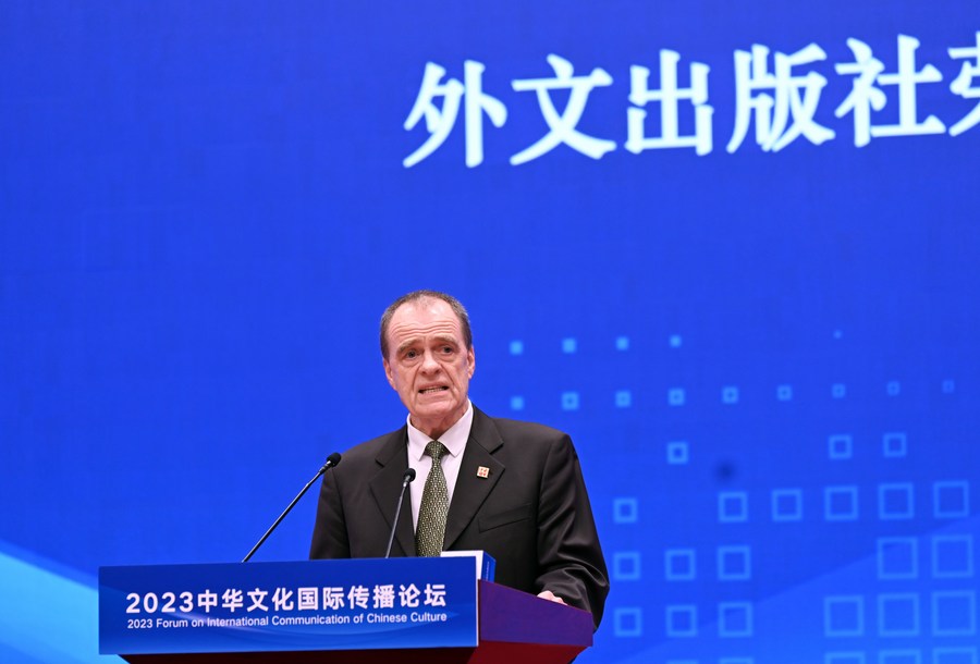 9月22日,外文出版社荣誉英文主编大卫·弗格森在2023中华文化国际传播论坛上发言。新华社记者 金良快 摄
