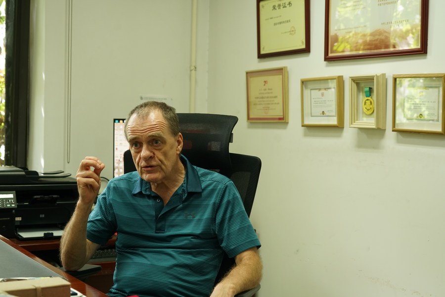 大卫·弗格森在办公室接受新华社记者专访。新华社记者 朱昊晨 摄