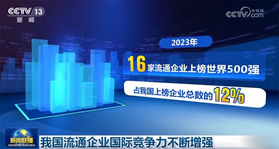中国物流与采购联合会公布的最新报告显示,我国流通体系建设取得显著成效,流通企业国际竞争力不断增强。2023年16家流通企业上榜世界500强,占我国上榜企业总数的12%。我国流通网络也日益完善,截至目前,全国规模以上物流园区超过2500家,亿元以上商品交易市场超过3000个,全国快递服务营业网点超过23万处。另外,78家规模流通企业在国内地级市基本实现网点全覆盖,辐射世界各国和地区平均超过50个;对外投资额平均超过30亿美元。