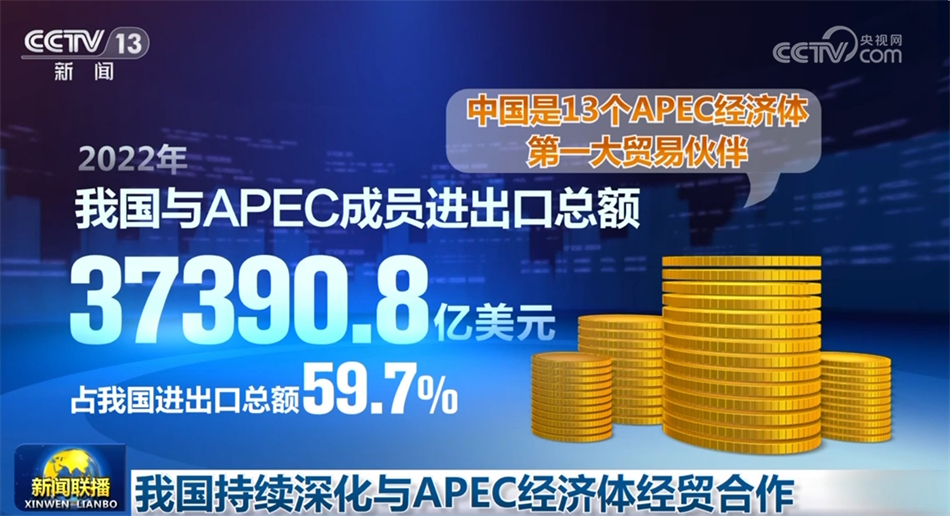 商务部最新数据显示,2022年,我国与APEC成员进出口总额为37390.8亿美元,占我国进出口总额的59.7%。中国是13个APEC经济体的第一大贸易伙伴。