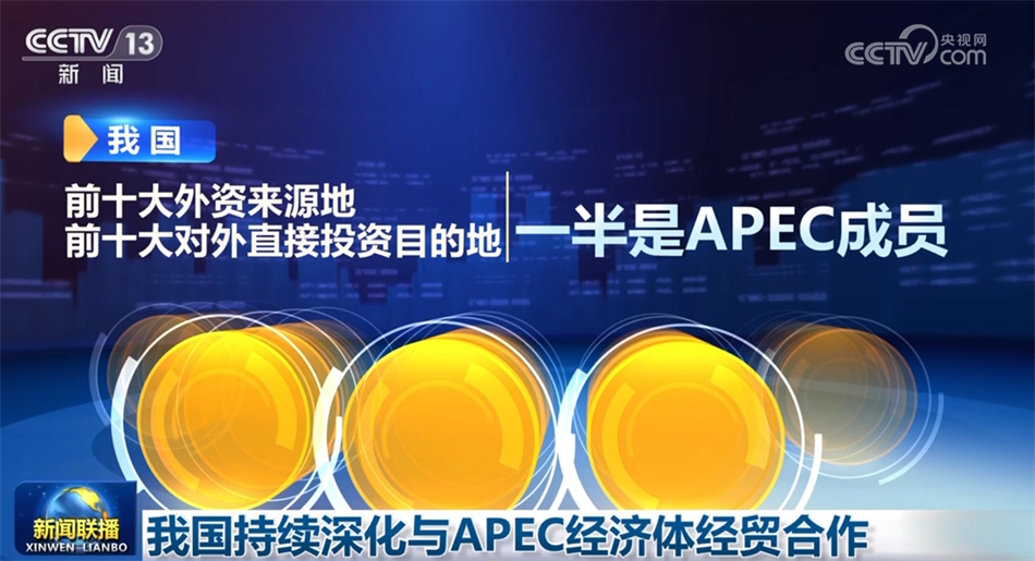我国前十大外资来源地和前十大对外直接投资目的地中,一半是APEC成员。
