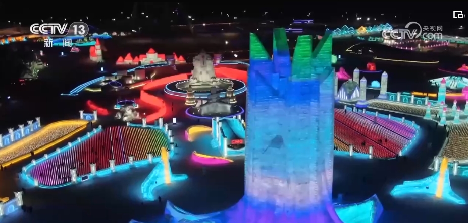 在位于哈尔滨的冰雪运动大世界,多台造雪机昼夜不停工。目前,门票预订量已经达到2019年的三倍。