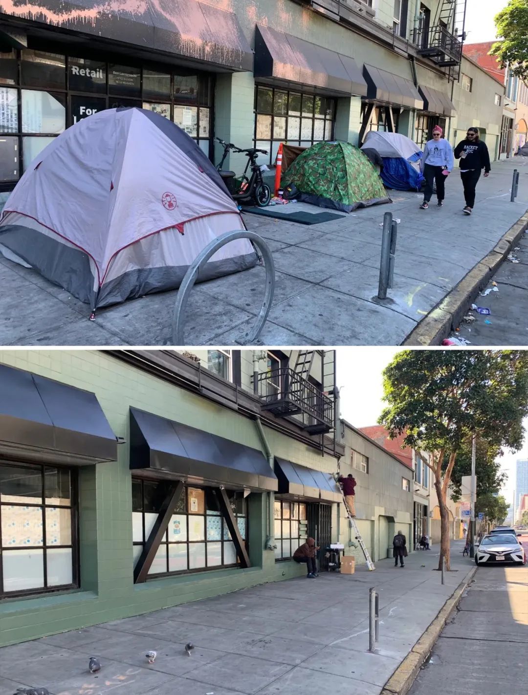 ▲ 近日,旧金山为迎接APEC会议大力整顿市容,昔日的毒品街区、无家可归“帐篷族”一夜消失。