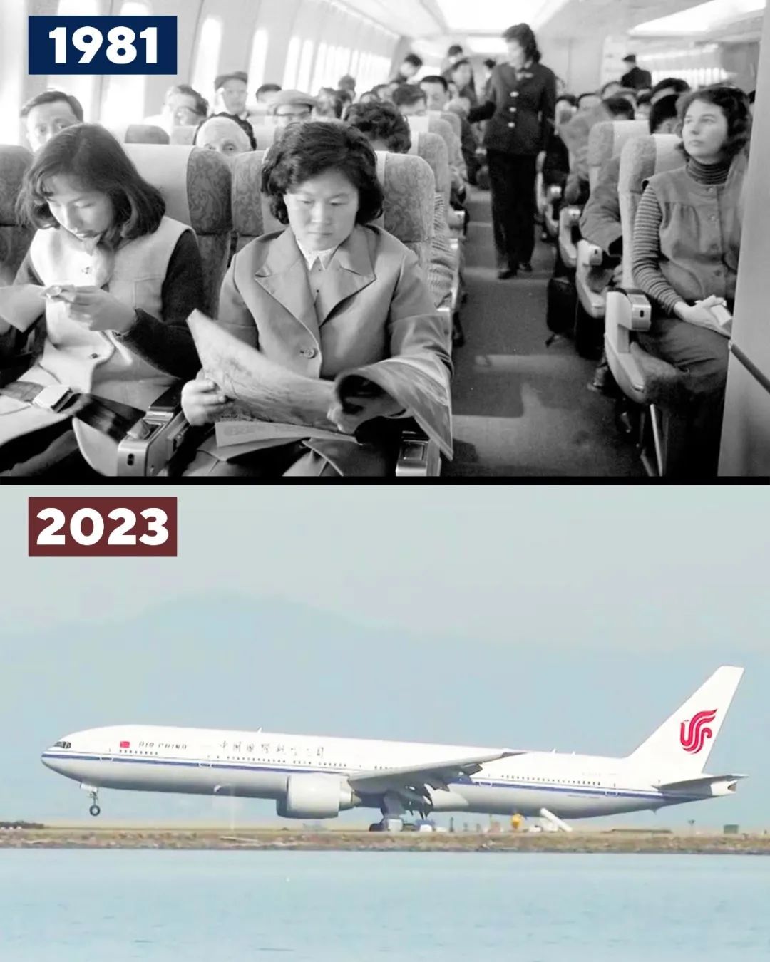 1981年1月,中美间首条航线,北京—上海—旧金山—纽约航线开通。2023年11月,国航的北京—旧金山直飞航班复航。