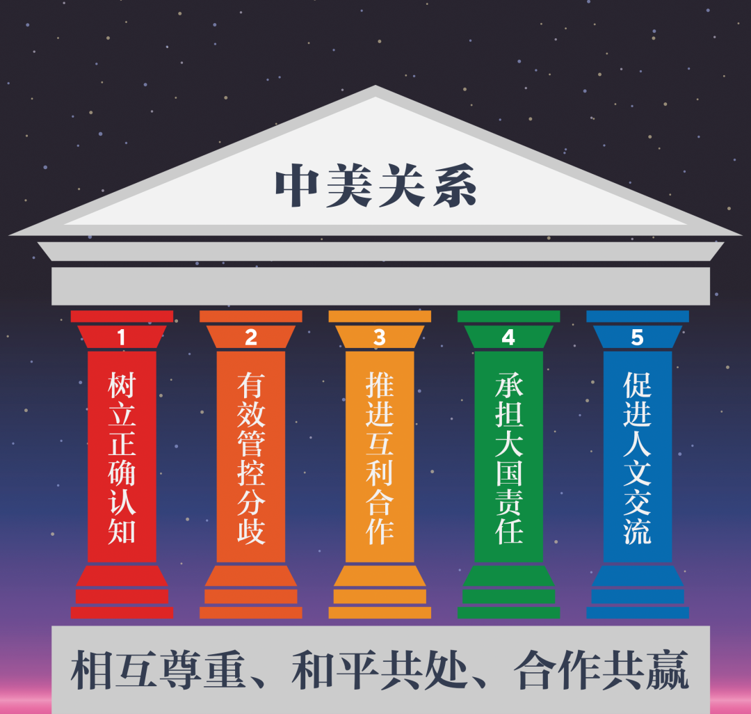 ▲ 中方提出的三项原则、五根支柱,为中美关系垒基上梁。