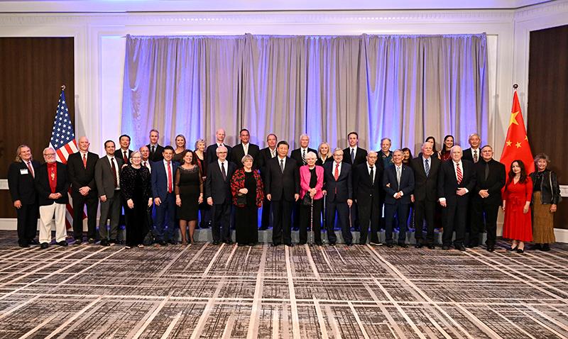 当地时间11月15日,在美中关系全国委员会、美中贸易全国委员会、亚洲协会、美国对外关系委员会、美国商会等友好团体举行的联合欢迎宴会上,习近平主席又见到了许多老朋友。