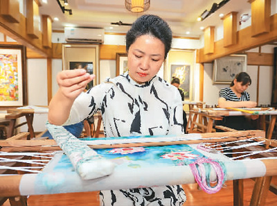 本报电 (魏琴)近日,位于遂宁市船山区永和家园的四川省非遗研学传习中心里,蜀绣非遗传承人黄海彦和数名绣娘围坐在一起,为一年一度的遂宁市乡村振兴蜀绣技能大赛创作参赛作品《“花开果成”荷花韵》。绣娘们手指轻捻绣花针,熟练地飞针走线,在锦缎上绣出一幅幅栩栩如生、清新脱俗的荷花图。