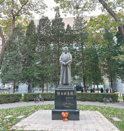 秋冬之交,北京的天空高远起来,北京师范大学的银杏叶子也落了。满地金黄之上,一座铜像立在楼群之中,静静守望着这个京师文史重镇。铜像脚下,是启功题字“陈垣校长像”。时至今日,北师大的学生提起陈垣时,还会亲切地称一声“陈校长”,仿佛这位一生精诚治学、着力兴教的历史人物仍然“活在今日”。
