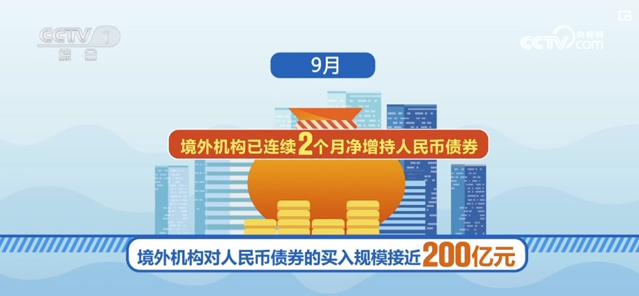 日前,中国人民银行上海总部发布境外机构投资银行间债券市场相关情况。数据显示,境外机构已连续2个月净增持人民币债券。10月,境外机构买入规模超400亿元,创下过去4个月以来新高;9月,境外机构买入规模接近200亿元。