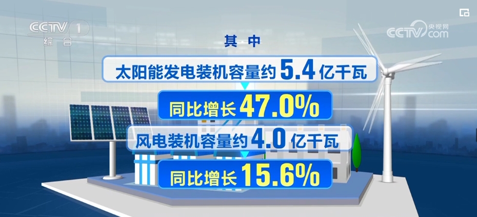 国家能源局11月20日发布1—10月份全国电力工业统计数据。截至10月底,全国累计发电装机容量约28.1亿千瓦,同比增长12.6%。其中,太阳能发电装机容量约5.4亿千瓦,同比增长47.0%;风电装机容量约4.0亿千瓦,同比增长15.6%。