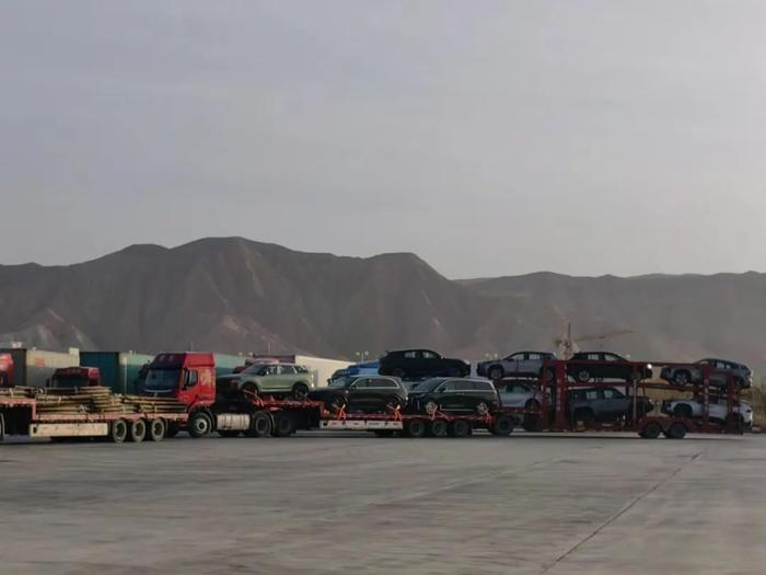 在群山环抱的吐尔尕特口岸,我们见到满载货物的大卡车接踵而至,轰隆隆的场景好不热闹。不同于红其拉甫口岸的日用百货、鞋服衣物,在这里,新能源汽车正作为畅销商品发往中亚市场。