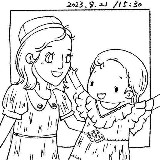 阿依夏和好朋友合影,游客还画了手绘图(受访者供图)