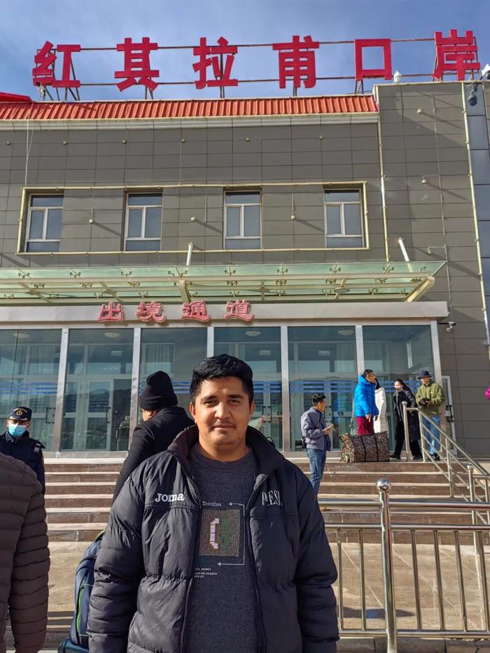 岛叔岛妹碰到一位巴基斯坦小哥。他似乎已把货物集中完毕,气定神闲立在口岸外,等待与同伴汇合。我们上前攀谈,用英文问他是哪国人、去哪里、运了什么货,没料到他用流畅的中文回答:“我是巴基斯坦人,要运货回国。你呢?你从哪里来?”