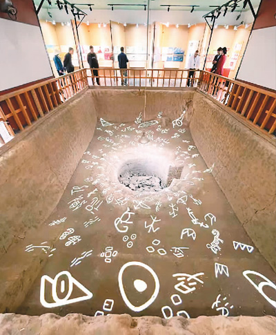 岳洁琼是此次展览的策展人之一。她表示,殷墟甲骨举世闻名,绘本作品在甲骨窖穴展厅展出具有特殊意义。“我们以投影的方式将这套绘本中介绍的一些甲骨文字及其异体字,投射到展厅中间的127复原坑中,是对发现甲骨文、研究甲骨文的先贤们致敬,也是我们励志传承文化别具意义的见证。”